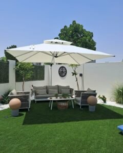كما يمكن دمج المظلات مع السواتر لتوفير خصوصية إضافية.
