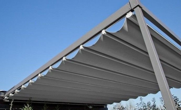 تعتمد على هيكل معدني قوي مع تغطية علوية من القماش أو ألواح معدنية. تتميز بالمتانة والقدرة على تحمل الرياح الشديدة، وتناسب الفلل، المدارس، المنشآت التجارية والمواقف العامة.
